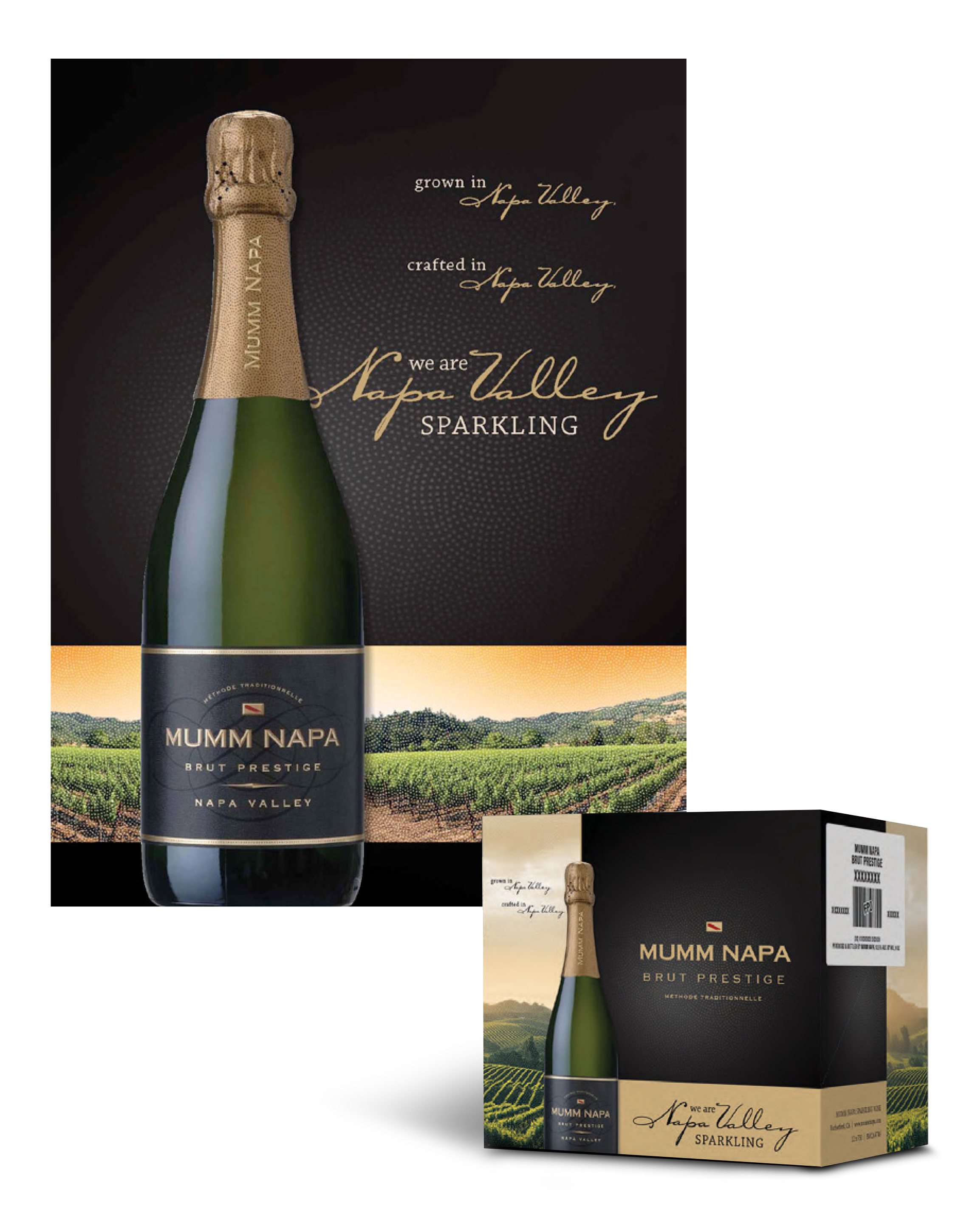 Mumm Napa needed a refresh for their evergreen shippers and case displays. This exercise included creating an ownable, yet familiar refresh of their look and feel. The messaging proudly communicates the unique claim of the brand—being grown and crafted completely in Napa. Leveraging imagery from the vineyards, accented with a circular motif inspired by the bubbles of Mumm Napa, the refresh was a sparkling success. My role: collaboration on concept development, design and copywriting.
